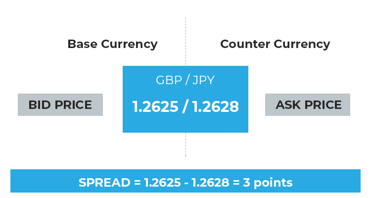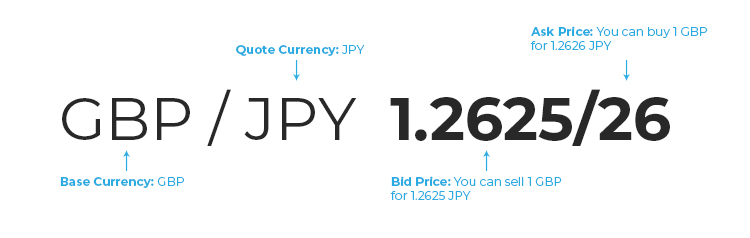 The first in the pair, Pound, is the base currency. And the second, Yen, is the quote or counter currency.