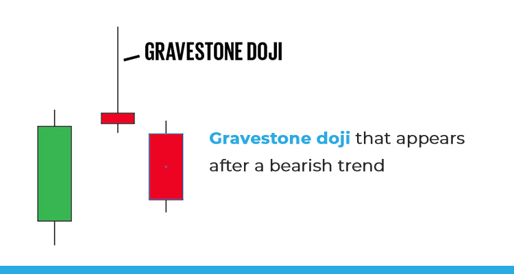 Gravestone- type of doji that appears after a bearish trend. It marks reversal.